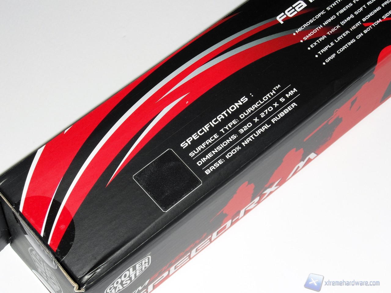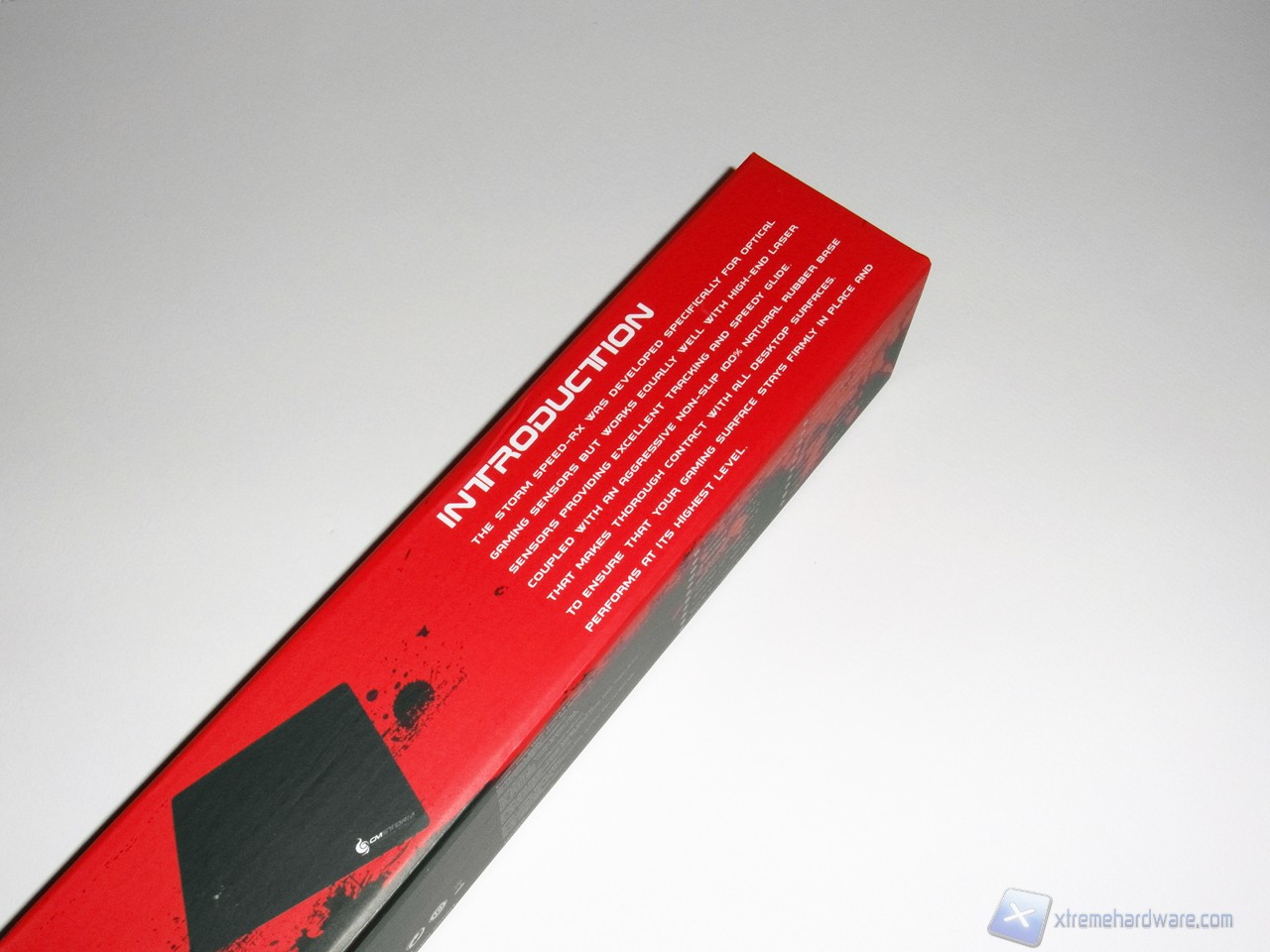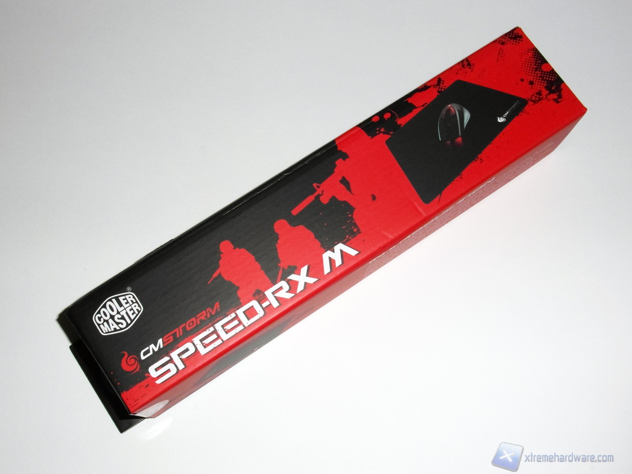 Come tutti i mousepad in tessuto CM Storm, lo Speed-RX arriva in una scatola rettangolare di piccole dimensioni, dove all'interno il mousepad è riposto arrotolato.