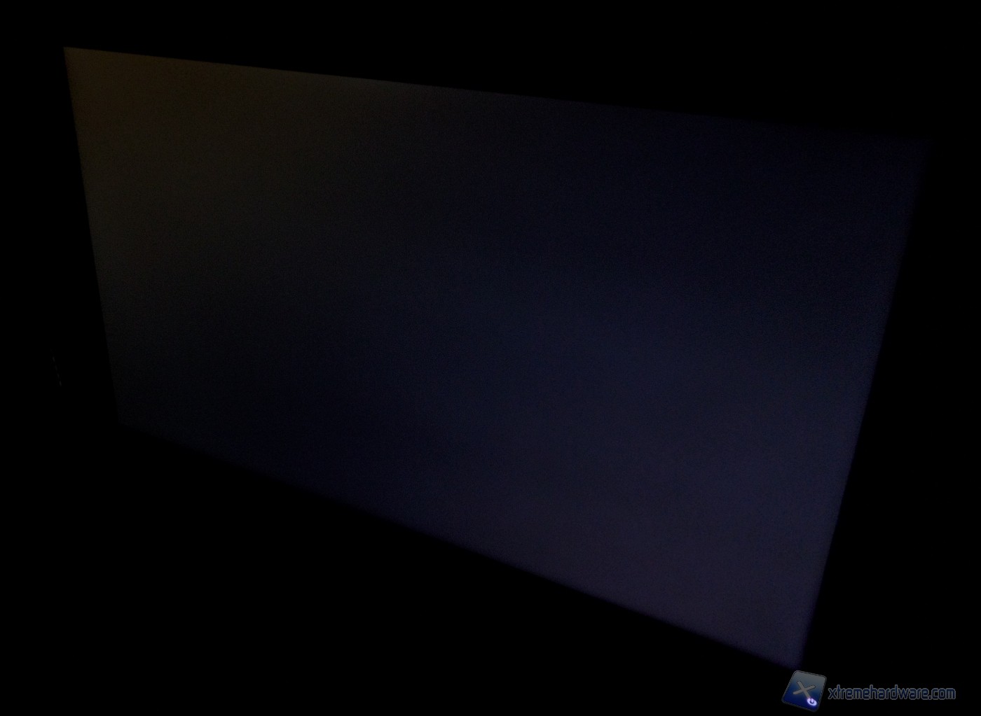 Questo è il test dove un pannello TN mostra i maggiori problemi, specialmente con angolazioni verticali. Per una schermata completamente nera invece non si avverte il classico bagliore tipico dei pannelli IPS (e varianti), anche se rimangono percepibili zone dalla diversa tonalità (sfumature violacee).