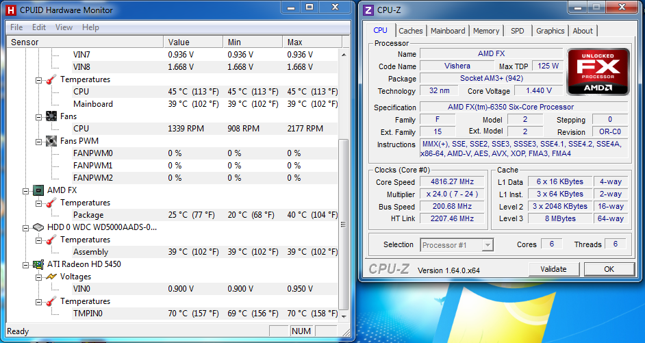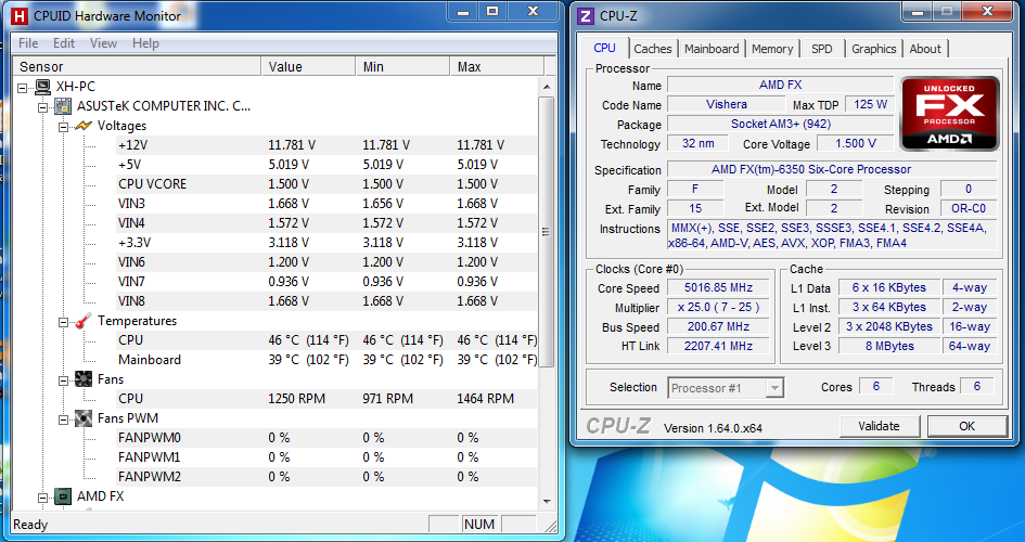 Come abbiamo detto, l'FX-6350 parte da una frequenza base di 3.9 GHz e raggiunge i 4.2 GHz in modalità Turbo Core.