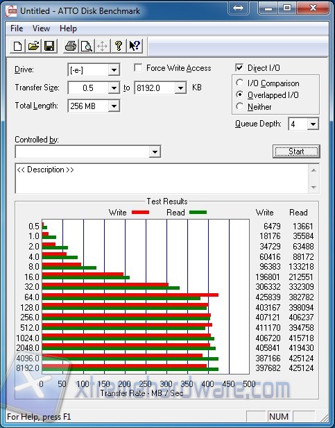 Atto è un benchmark gratuito che esegue dei semplici test in lettura e in scrittura in modalità sequenziale adoperando una Queue Depth (file in coda) di 4. La scrittura di stringhe di zeri è una operazione che dal sistema operativo non viene effettuata quasi mai e quindi, pur riuscendo a sprigionare tutto il potenziale degli hard disk, risulta quasi futile al fine di velocizzare il sistema operativo.