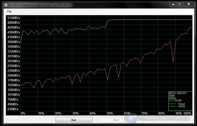 AS SSD Benchmark è un'altro benchmark gratuito studiato appositamente per SSD. Effettua i suoi test sintetici senza adoperare la cache del sistema operativo che va ad influenzare pesantemente i risultati del Transfer Rate, inoltre determina i tempi di accesso del drive sfruttando l'intera capacità del drive stesso. Tutti i test vengono effettuati utilizzando dati non comprimibili.